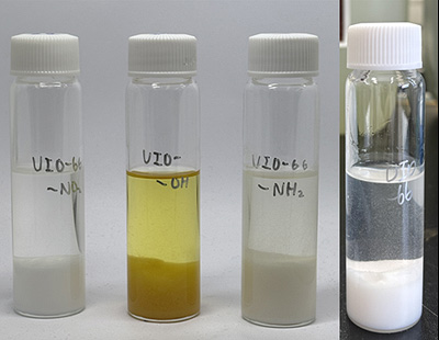 (왼쪽부터 -NO₂, -OH, -NH₂, UiO-66)