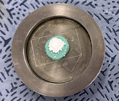 시료를 혼합하며 저희가 가장 먼저 신경 쓴 점은, 이후 비교가 공정하게 이루어지도록 출발선을 최대한 같게 맞추는 것이었습니다. UiO-66 및 그 유도체(UiO-66-NH₂, UiO-66-NO₂, UiO-66-OH, UiO-66-SO₃H)를 합성하기 위해 각 MOF 합성 시 필요한 클러스터인 ZrCl₄와 리간드, 산, 용매를 순서대로 혼합하고 초음파 처리하여 용해시켰습니다. 이후 혼합 용액을 오븐에서 가열하여 결정을 성장시켰고, 이 단계에서 용액의 색 변화나 침전 형성 양상이 유도체별로 미세하게 달라 작용기 차이가 합성 과정에도 영향을 줄 수 있음을 확인했습니다.