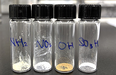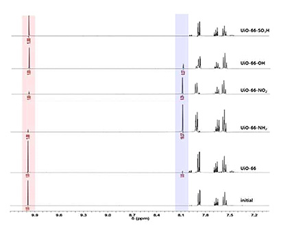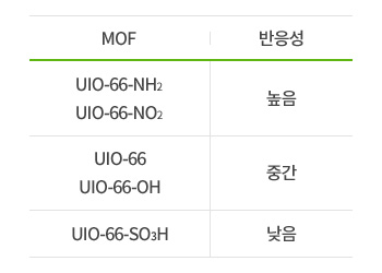 (왼쪽부터 -NH₂, UiO-66, -NO₂, -OH)