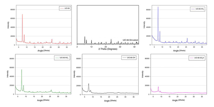 (왼쪽부터 -NO₂, -OH, -NH₂, UiO-66)