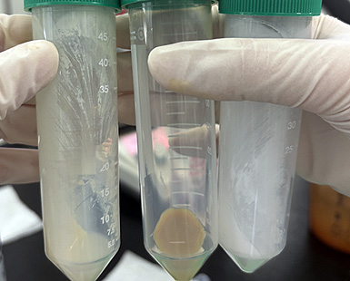 연구 초기에는 UiO-66 합성이 원활하지 않아 침전물 형성이 적은 어려움을 겪었습니다. 분명 같은 조합을 넣고 같은 과정을 거쳤는데도 침전이 기대만큼 생기지 않아, 어디서부터 다시 확인해야 할까라는 질문이 반복해서 남았습니다. 이에 전문가 피드백 과정을 거치며 반응 조건을 재검토해야 한다는 조언을 받았습니다. 해당 조언을 바탕으로 기존의 반응 조건이었던 120℃, 48시간에서 80℃, 18시간으로 온도와 시간을 조정하여 재실험을 진행하였고, 그 결과 보다 안정적인 결정 구조의 UiO-66을 얻을 수 있었습니다.