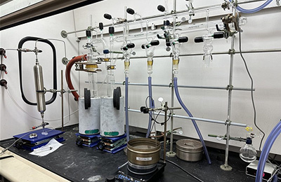 진공 건조는 워싱 과정에서 MOF 내부에 남아 있는 용매를 빼내어 기공을 열어주는 활성화 과정입니다. MOF는 내부에 작은 구멍(기공)이 많은 물질인데, 합성이나 워싱 과정에서 용매가 그 기공 안에 남아 있으면 반응물이 들어가기 어려워 촉매로서의 성능을 제대로 평가할 수 없습니다. 그래서 저희는 각 MOF를 vacuum line(슈링크라인)에 연결하고, 90℃에서 12시간 이상 열을 가하며 진공 상태로 건조해 잔여 용매를 제거했습니다. 눈에 띄는 변화는 크지 않았지만, 이 과정을 충분히 거쳐야만 기공을 가진 촉매라는 MOF의 장점이 실제 반응에서 발현될 수 있음을 확인할 수 있었습니다.